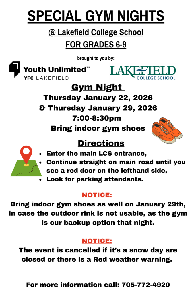 Gym night is back on Thursday, January 22nd & 29th at Lakefield College School (details below)! 🎉