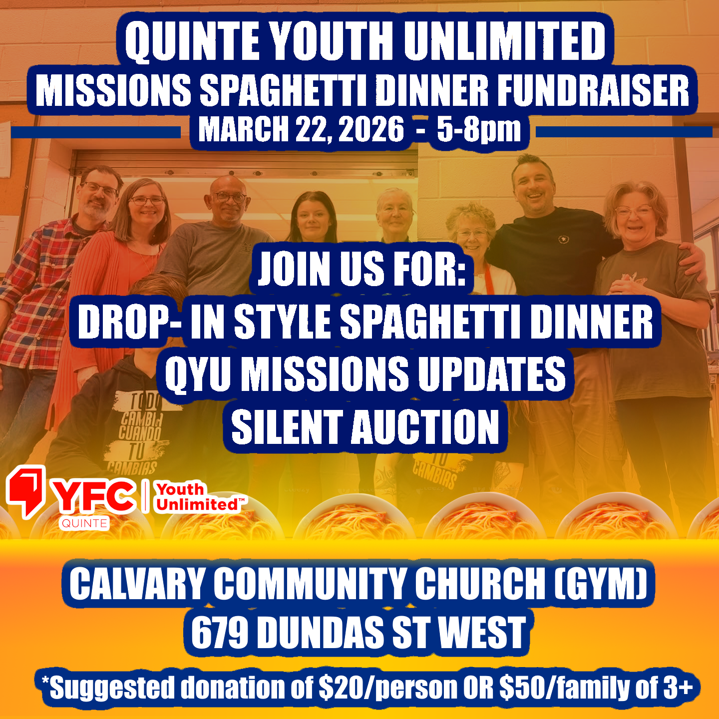 You are invited to our Spaghetti Dinner Fundraiser in support of our partnership with Youth For Christ in Bolivia (Juventud Para Christo)!