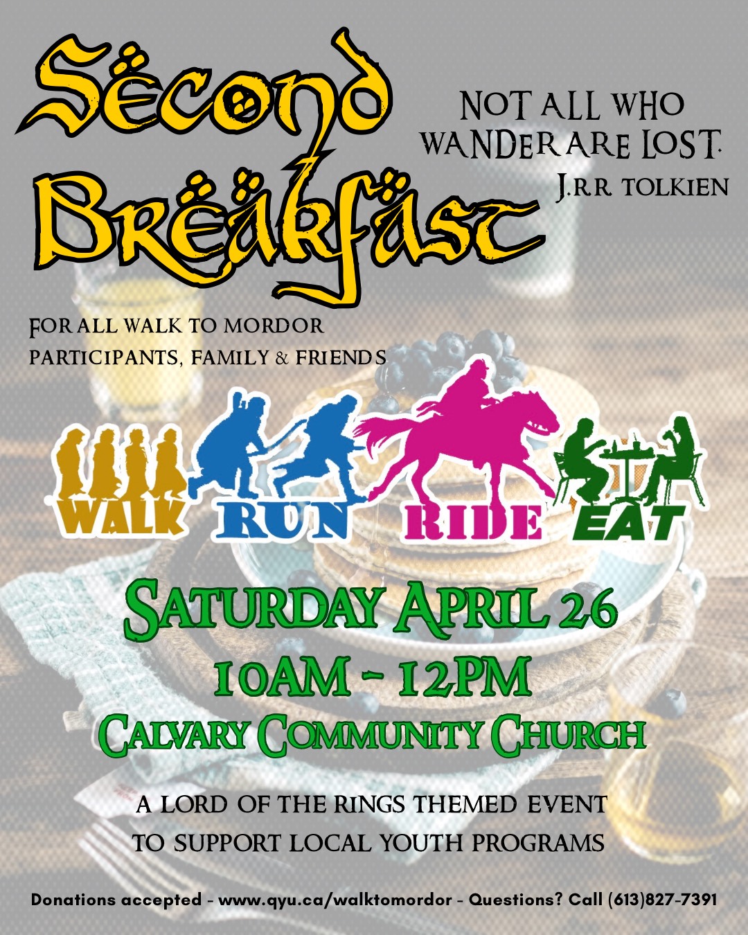 Come celebrate the end of Walk to Mordor at SECOND BREAKFAST, a LOTR themed walk and free breakfast on Saturday April 25th!